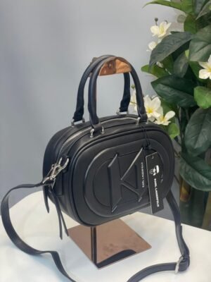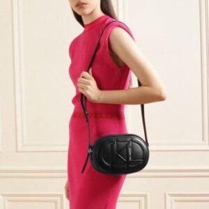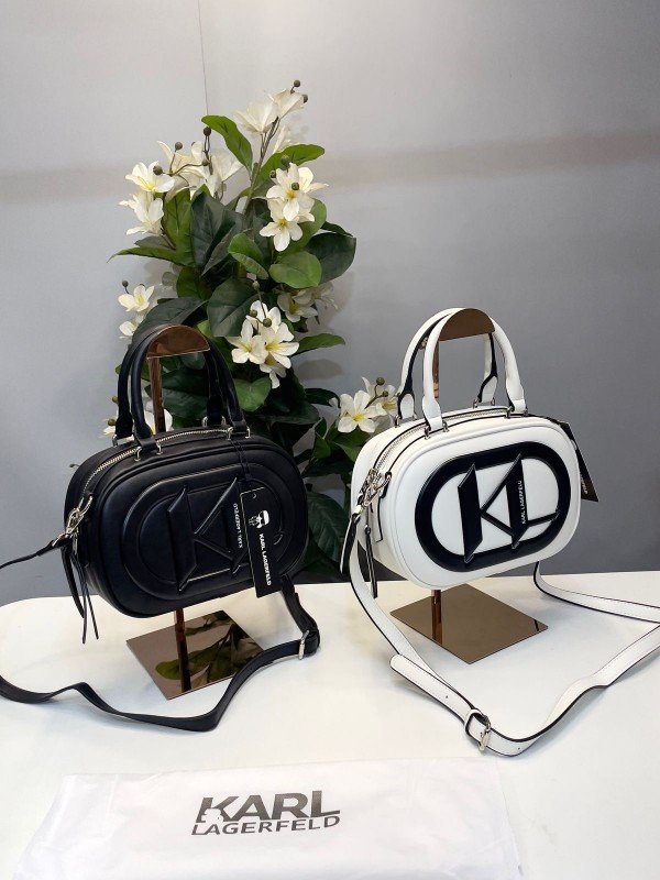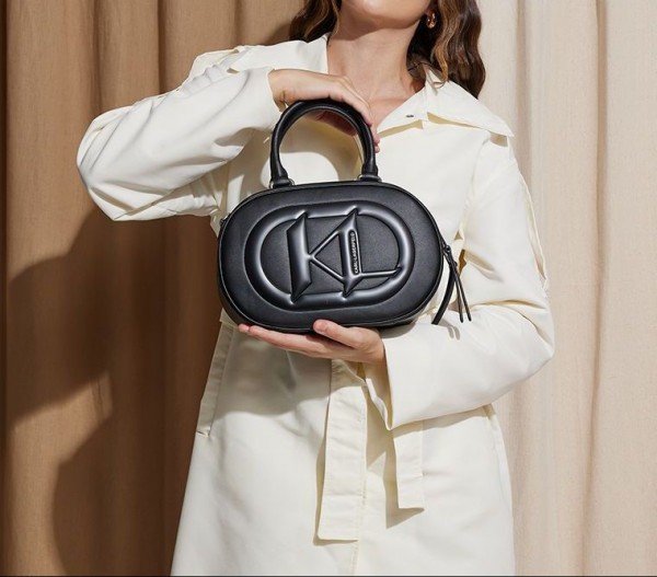 KARL LAGERFELD TEXTURED DETAILED TOP HANDLE BAG WITH DUST BAG(BLACK)