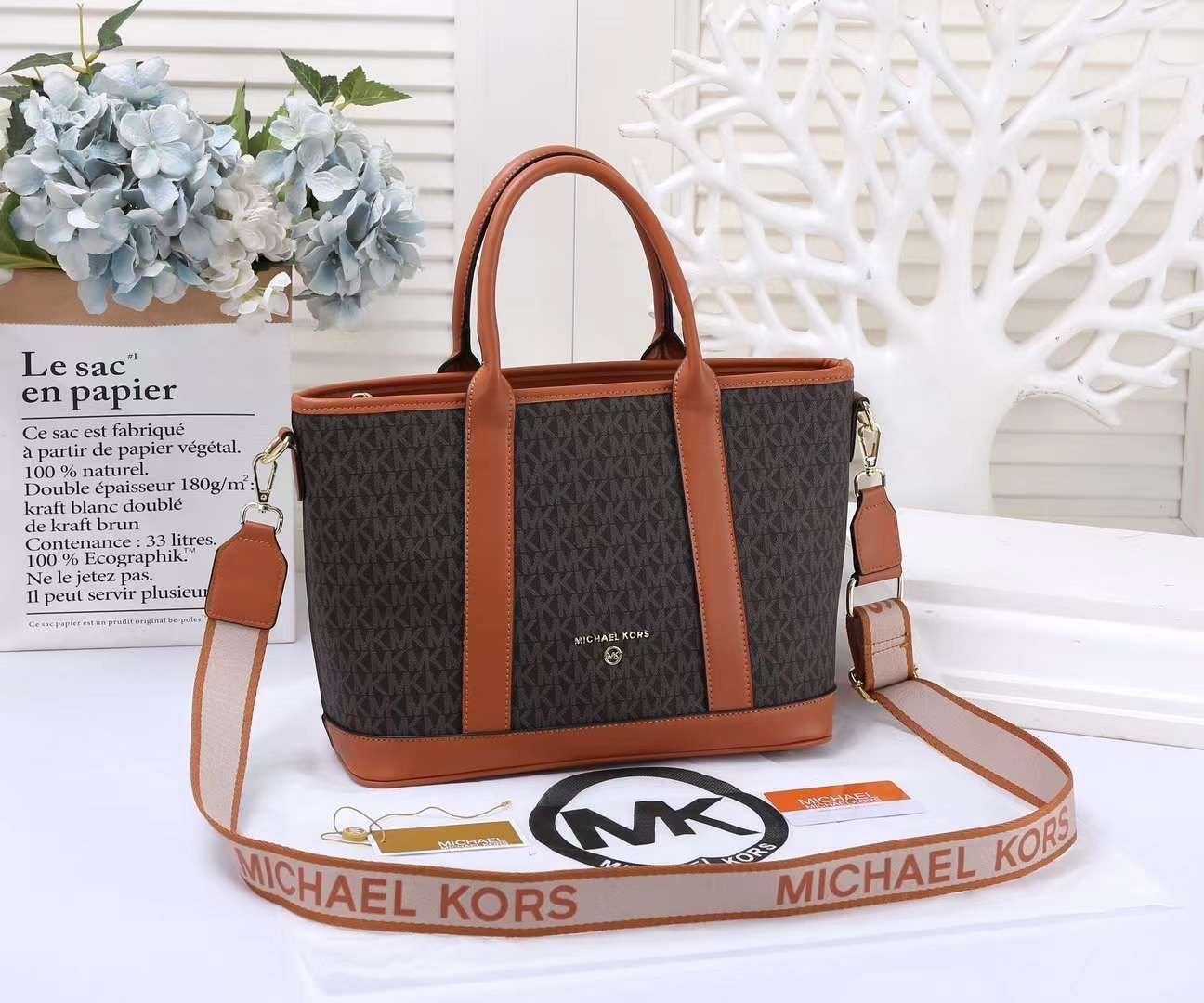 MICHAEL KORS SIGNATURE LOGO SATCHEL MEDIUM TOTE BAG (COFFEE)