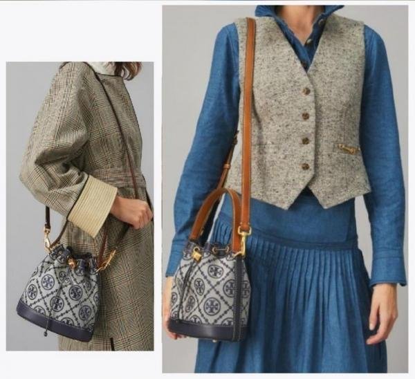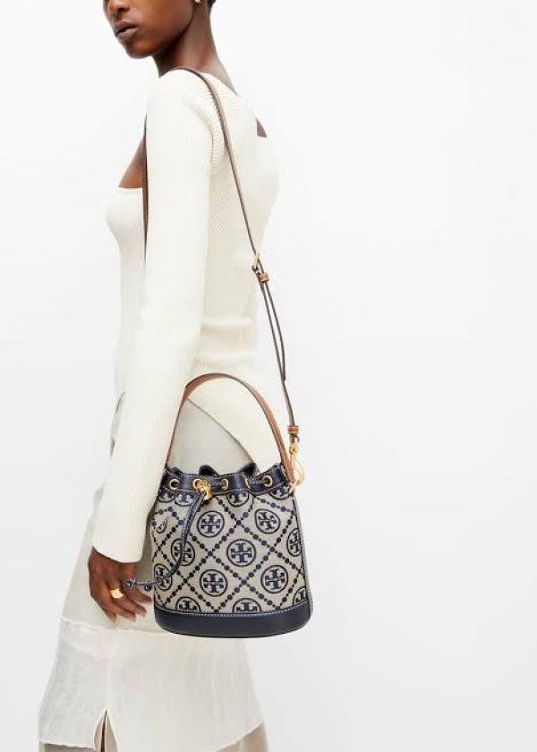 TORY_ T MONOGRAM JACQUARD BUCKET BAG WITH BOX